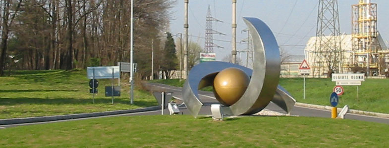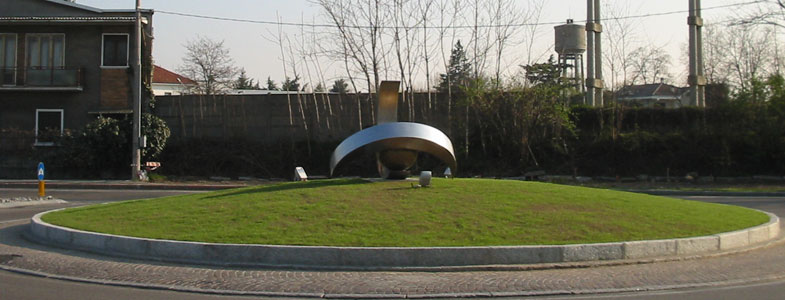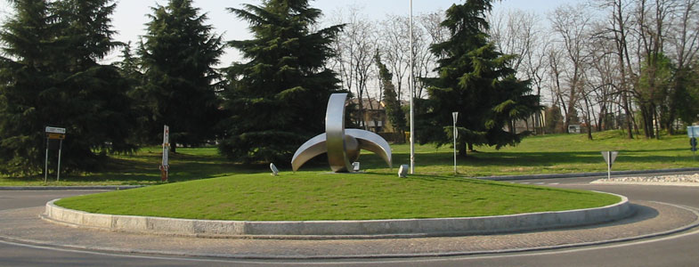 Tre sono gli elementi, che combinati così fra loro invadono lo spazio allungando i propri punti di fuga, accompagnando il movimento di chi percorre la rotonda: ho scolpito l'aria! , ho dato forma indelebile al moto costante che si crea intorno alla rotonda, è come se avessimo degli occhiali in grado di vedere il vento, l'aereodinamicita' che avvolge, supera e poi s'indebolisce dietro le macchine dopo il loro passaggio.